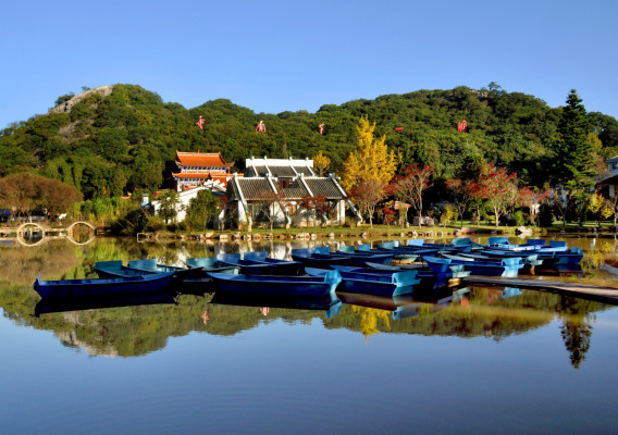 藍天碧草、湖水清澈、船只游蕩、習習暖風吹拂、綠樹成蔭,“云南第一洞”的美名映入眼簾,一派別致景色,令人心曠神怡。(楊俊 攝)
