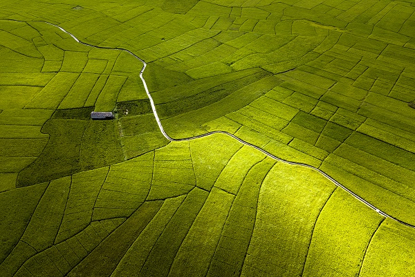 一場夏雨過后,田里新插的秧苗,一個勁地趕著長高長旺,漸漸豐滿,密密實實的翠綠逐漸覆蓋了阡陌縱橫的水田,在希望的田野里努力織造一片片生機勃勃的“綠毯”。(何成江 攝)
