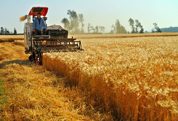 田家少閑月,芒種收割忙。“芒種至,麥收忙”。艷陽高照的田間,農人正忙著收割麥子,一遍豐收繁忙的景象。(李紅斌 攝)