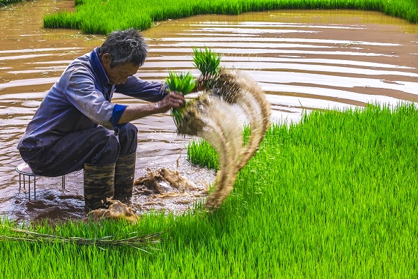 蔥郁的育秧田里,勤勞的農民在一蕩一甩之間涮洗秧苗根部泥塊,一束束嫩綠的秧苗如泥龍出水般譜寫著農耕的詩行,承載著農人一季的希望。(李光洪 攝)