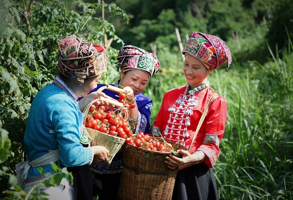芒種時節,紅紅火火的西紅柿映紅了農戶們的臉龐,也映紅了農戶們的好日子。(謝昭瑾 攝)