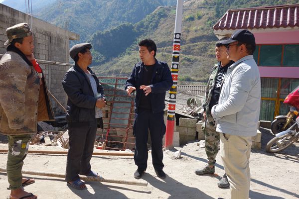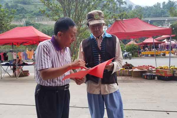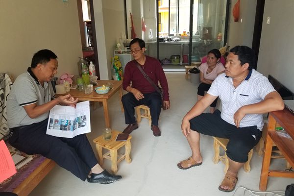 貧困戶家中、進村路上、田間地頭,哪里遇到貧困群眾,駐村工作隊員和背包隊員就在哪里開展宣傳動員工作。(高雪松 攝)