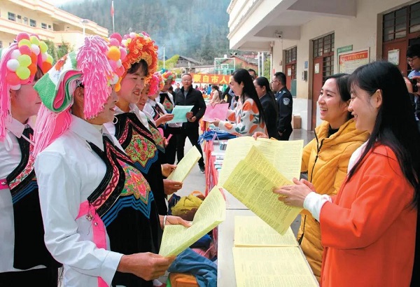 紅河州紀檢監察干部到蒙自市水田鄉參加文化科技衛生“三下鄉”暨新時代文明實踐系列志愿服務活動,向基層群眾宣傳黨紀法規。(紅河州紀委監委 文娜/攝)