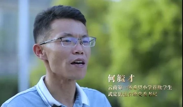 武定縣已衣鎮(zhèn)黨委書記何毓才是武定縣希望小學的第一批學生。他對希望工程充滿了感激。