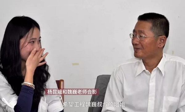 在忙碌的基金會工作之外,終身未娶的魏巍,還一直“照顧”著兩個沒有血緣關系的子女,一個是云南青基會“助學進城”計劃形象代言人楊昆娥,另一個是已經(jīng)上大學的重慶男孩楊英詠。楊昆娥的媽媽離開人世后,魏巍成了她離不開的親人。