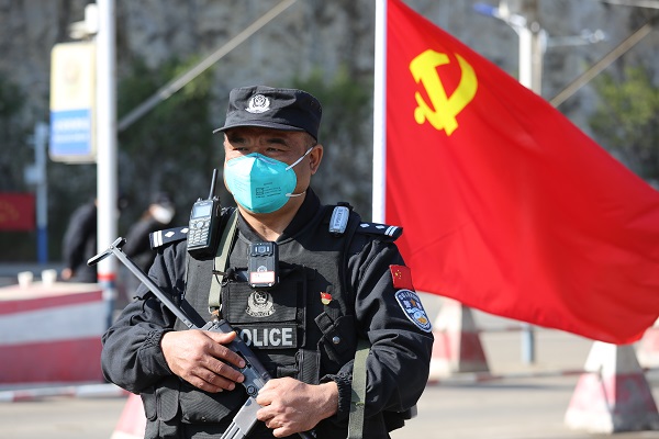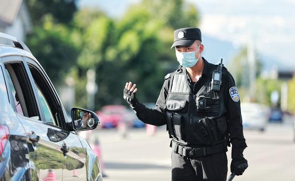 華坪縣公安干警堅守疫情防控一線,嚴格履行黨和人民賦予的神圣使命,始終把保護人民生命財產(chǎn)安全放在第一位。(蔡琦 攝)