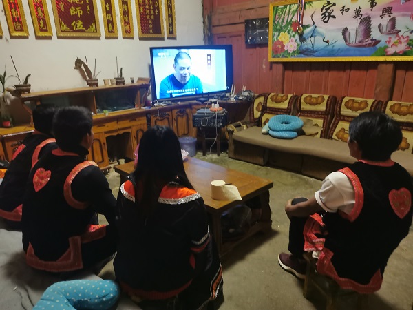臘勐鎮白泥塘社區傈僳族群眾通過電視收看《正風反腐就在身邊》。