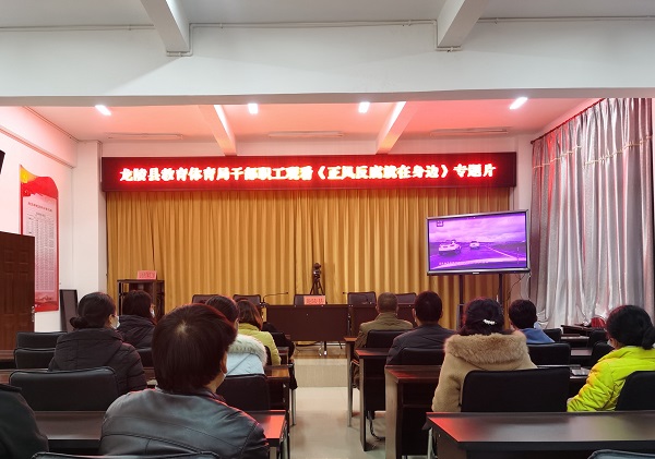 縣教育體育局黨員干部通過電視收看《正風反腐就在身邊》。