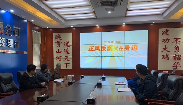 中鐵隧道局大瑞鐵路項目經理部通過網絡收看《正風反腐就在身邊》。