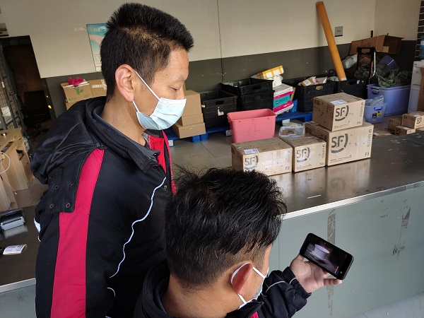 龍陵順豐快遞員用閑暇時間收看《正風反腐就在身邊》。