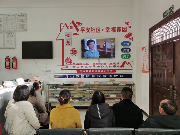 龍山鎮云山社區干部通過電視收看《正風反腐就在身邊》。