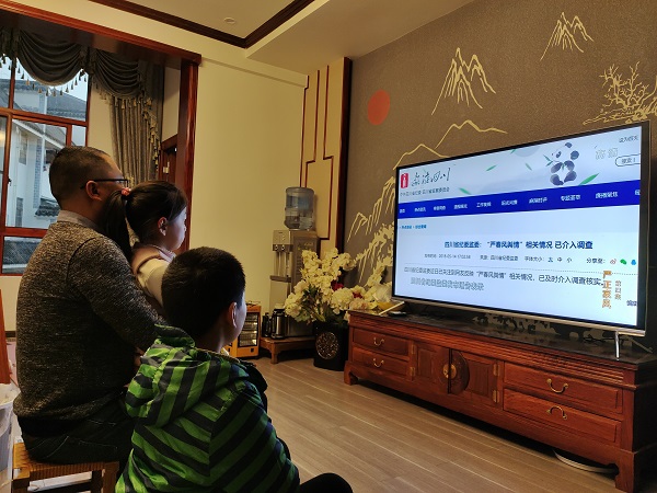 龍陵縣司法局龍山司法所干部帶領家人收看《正風反腐就在身邊》。