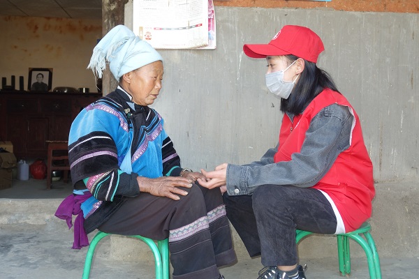 芒市醫(yī)療志愿服務(wù)隊為村民進(jìn)行愛心義診。她們用一顆顆躍動的心,完成愛的傳遞。(尨姬萱 攝)