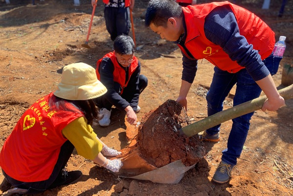 在植樹節即將來臨之際,安寧市望湖社區組織青年志愿者到森林公園開展“相約春天,共植希望”植樹節活動,進一步喚醒全社會的生態環保意識,努力改善生態環境,建設美好家園。(楊陽 攝)