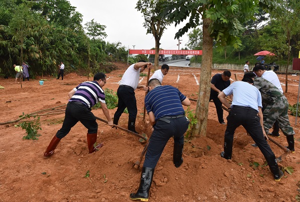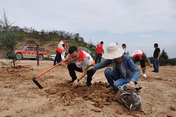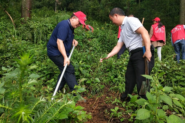 揮鋤鏟土、扶苗培土,種下希望,龍陵縣紀委監委黨員干部積極參與義務植樹活動,讓大山鋪滿綠色,以實際行動為改善生態環境添磚加瓦。(王龍芹 攝)