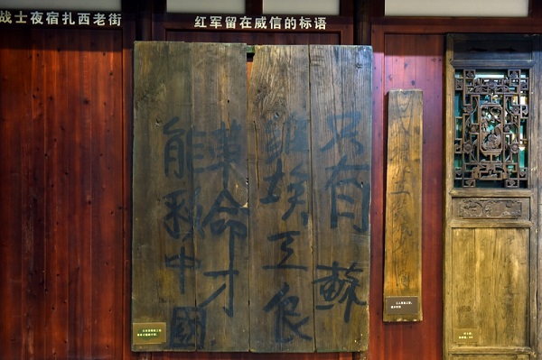 中共川南特委和紅軍川南游擊縱隊策應(yīng)中央紅軍和紅二、六軍團戰(zhàn)略轉(zhuǎn)移期間,遵照軍委指示,書寫大量標語,大張旗鼓地宣傳中國共產(chǎn)黨和紅軍主張、路線與政策。書寫在扎西鎮(zhèn)元圣殿木板壁上的“只有蘇維埃工農(nóng)革命才能救中國”的紅軍標語就是其中之一。