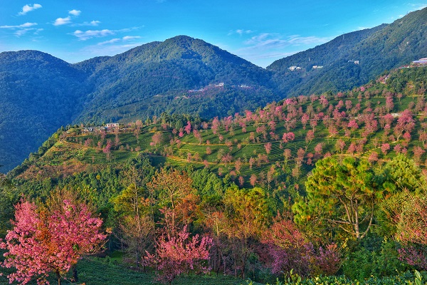 春回大地,萬物復蘇,春花爛漫,滿山的繁花風頭正盛,給大地披上五彩斑斕的外衣。(蔣莉 攝)