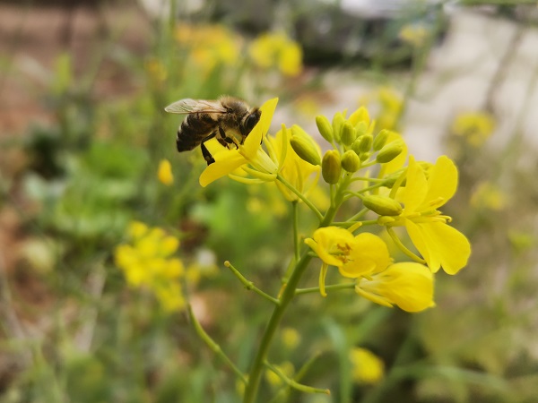 春風徐來,花香四溢,引得蜜蜂也開始“忙碌”起來,穿梭花間,馬不停蹄地采蜜。(夏增雯 攝)