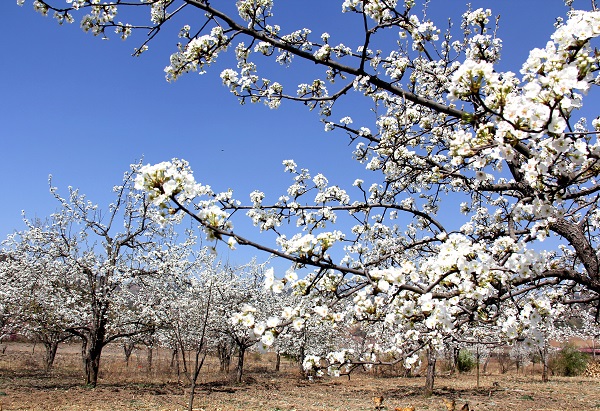 春意懶散,春花爛漫,這時正是梨花盛開的季節(jié),雪白的梨花掛滿枝頭,微風拂過,宛如穿著縞素的玉女翩翩起舞。(李燦美 攝)