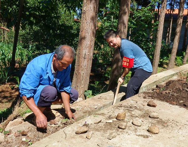 梁河縣紀(jì)委監(jiān)委黨員干部積極參與愛國衛(wèi)生運動,與群眾一同清垃圾。(李佳佳 攝)