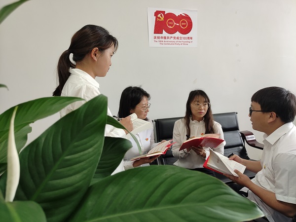 紀(jì)檢監(jiān)察干部以小組討論的形式開展黨史學(xué)習(xí)教育。(王龍芹 攝)
