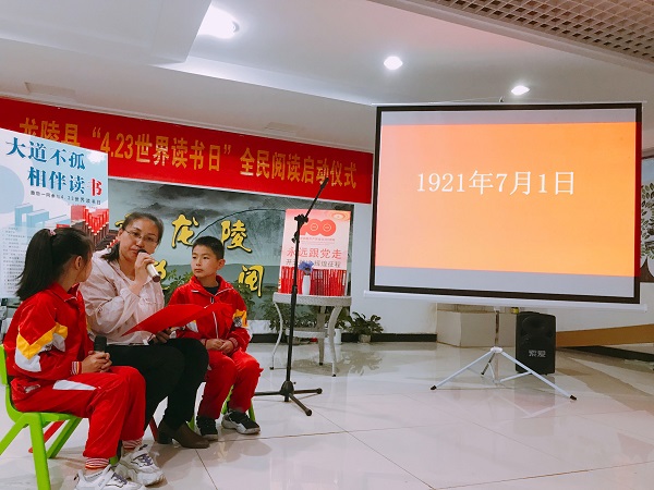 “4.23世界讀書日”,紀(jì)檢監(jiān)察干部給孩子講紅色故事,教育引導(dǎo)孩子從小感黨恩、聽黨話、跟黨走。(岳正涵 攝)