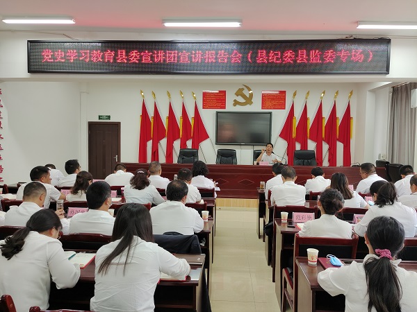 借助黨史學(xué)習(xí)教育縣委宣講團(tuán)宣講報(bào)告會(huì),教育引導(dǎo)紀(jì)檢監(jiān)察干部進(jìn)一步堅(jiān)定共產(chǎn)主義信仰,賡續(xù)精神血脈。(王龍芹 攝)
