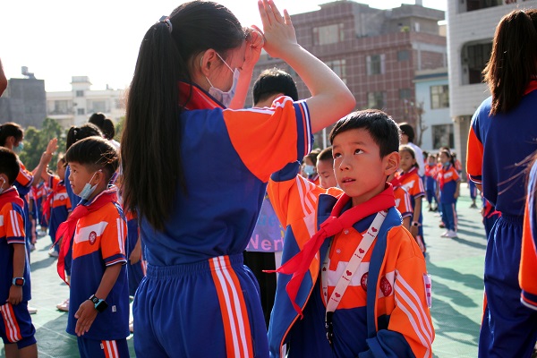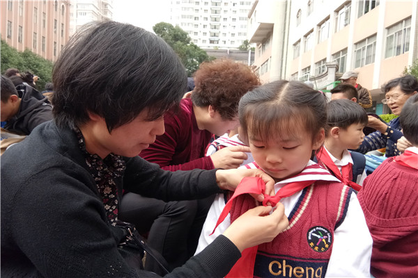 “我們是共產主義接班人,繼承革命先輩的光榮傳統……”這個“六一”,他們成為光榮的少先隊員。(徐國芳 攝)