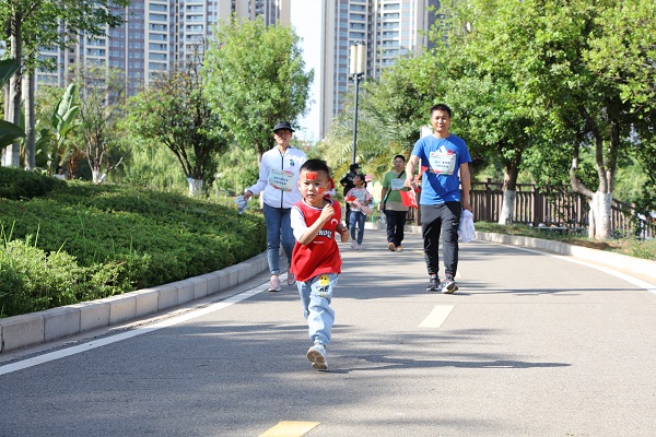 紀檢監察干部與家人一起參加迎接建黨100周年的“六一”家庭健走全民健身活動。(黃永美 攝)