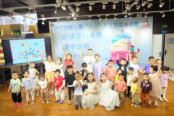 “閱讀走向未來,伴我健康成長。”“六一”兒童節,芒市紀委監委組織開展讀書活動。(陸金華 攝)