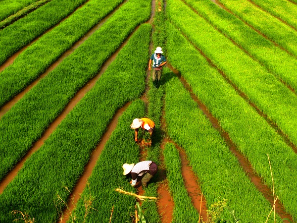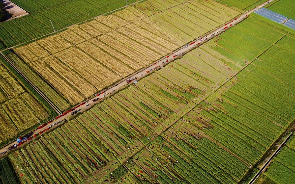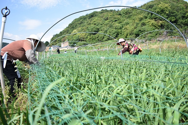 芒種時節,廣南縣珠琳鎮的韭菜田里一派忙碌景象,辛勤的菜農們搶抓時節,忙著對田間韭菜進行中耕管理,綠禾搖曳,豐收在望。(陸毅芳 攝)
