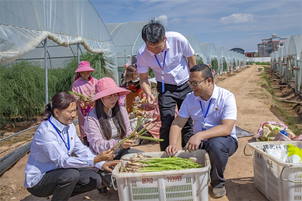 該縣紀委監委圍繞產業扶持政策落實情況開展監督檢查,督促相關職能部門履行工作職責,以強有力的監督鞏固和拓展脫貧攻堅成果,護航鄉村振興。圖為紀檢監察干部在共和鎮新甸村了解蘆筍種植情況。(李光洪 攝)