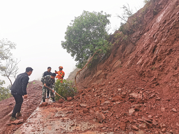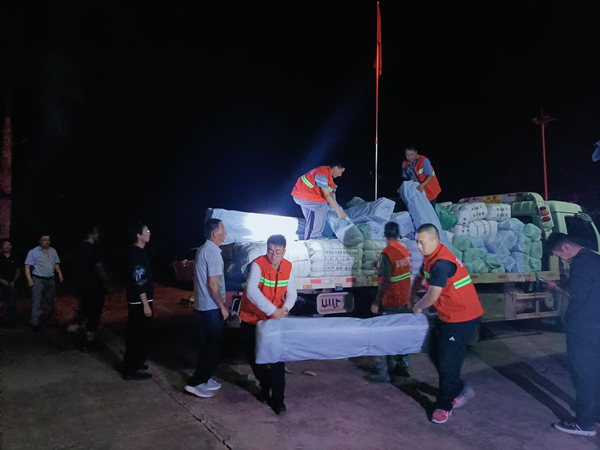 安龍堡鄉紀檢干部積極參與收集災情、統籌救援、發放物資、疏通道路等救援工作。(韋劍 攝)