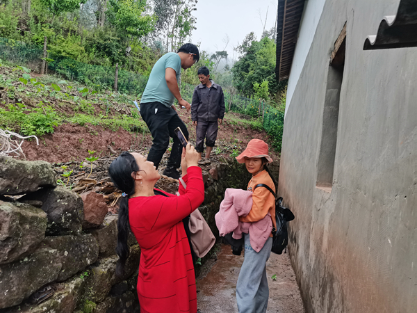 妥甸鎮紀檢干部深入大敵魯村村委會農戶家中了解核實受災情況。(李武華 攝)