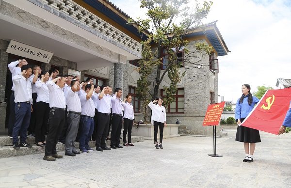 張伯簡是白族第一個(gè)共產(chǎn)黨員,云南赴歐勤工儉學(xué)第一人,2009年張伯簡紀(jì)念館被命名為“云南省愛國主義教育基地”,劍川縣紀(jì)檢監(jiān)察干部走進(jìn)紀(jì)念館,重溫入黨誓詞,堅(jiān)定初心使命。 (李紅霞 攝)