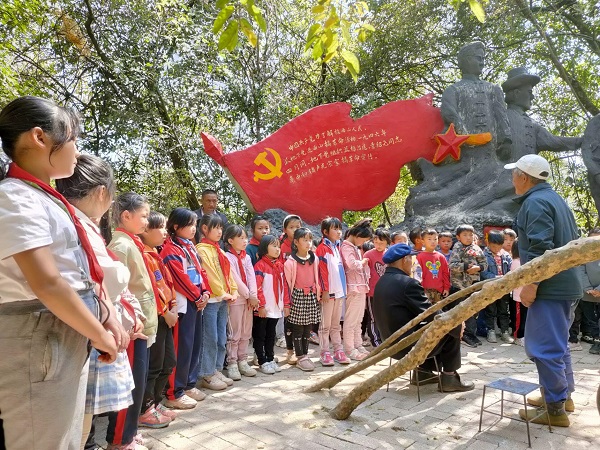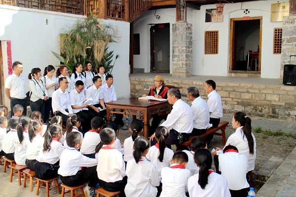 為傳承革命精神,彌勒市西一中心校的少先隊(duì)員們來到彌勒市中和鋪紅色教育基地聆聽老黨員講述過去的革命故事。(米潔 攝)