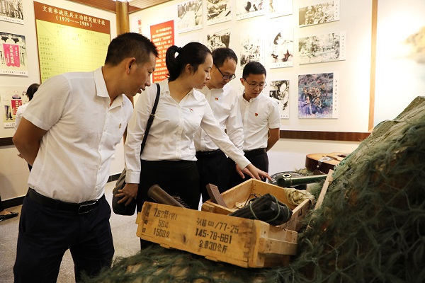 文山市紀(jì)委監(jiān)委把革命傳統(tǒng)教育融入黨史學(xué)習(xí)教育中,組織紀(jì)檢監(jiān)察干部到老山前線,記錄打卡紅色旅游經(jīng)典景區(qū),重溫崢嶸歲月,緬懷革命先烈,聆聽紅色故事。圖為紀(jì)檢監(jiān)察干部在觀看老山戰(zhàn)斗中使用過的“老物件”。(王銘堅(jiān) 攝)
