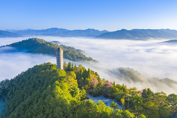 寧洱縣東側的錦袍山巔,矗立著一座塔,當地人稱其為“凌云塔”或“文筆塔”,塔寓“天濟文昌”,輔助文化昌盛。(饒雪松 攝)