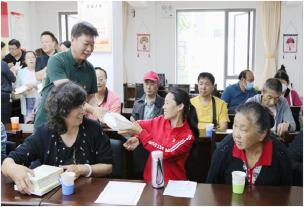 個舊市紀委監委為社區的退休老黨員送去黨史學習教育讀本,提升黨史學習教育覆蓋率,共同營造知史愛黨、知史愛國的氛圍。(魏潤麗 攝)