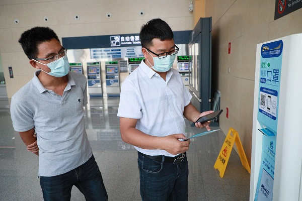 彌勒市紀(jì)檢監(jiān)察干部化身旅客,在高鐵彌勒站掃碼體驗(yàn)防疫設(shè)備運(yùn)行情況,現(xiàn)場核驗(yàn)疫情防控措施落實(shí)情況,著力發(fā)現(xiàn)和推動(dòng)防控問題解決。(楊婷婷 攝)