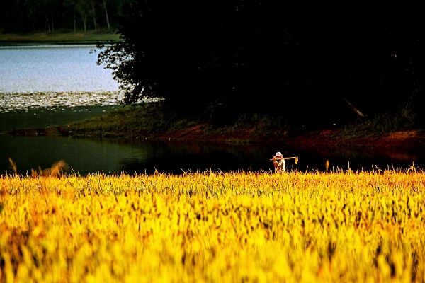勐邦湖的秋,靜靜躺在湖光山色的漣漪中。(陶玲紅 攝)