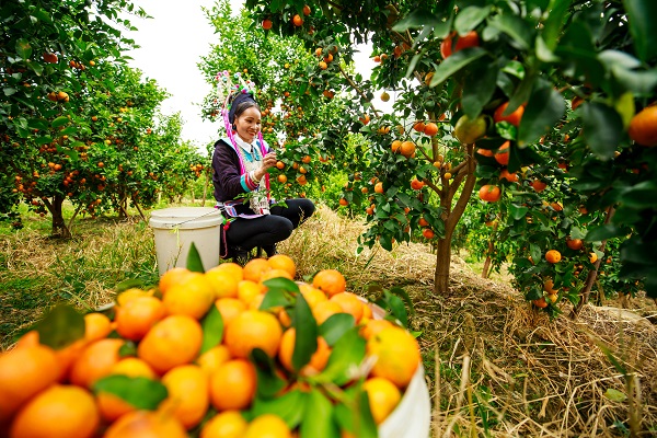 黃澄澄的橘子掛滿枝頭,滿山滿谷都是成熟的芳香。(馬衛忠 攝)