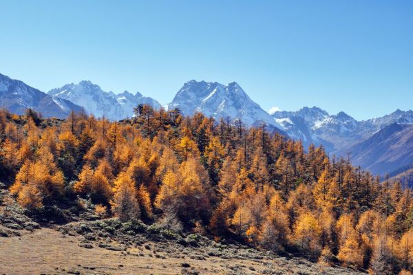 十月的白馬雪山,紅葉白雪蒼山青天,天上人間,令人心曠神怡。(王強 攝)
