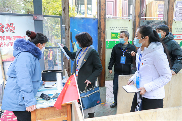 嵩明縣紀(jì)委監(jiān)委監(jiān)督檢查組到各村(社區(qū))疫情防控堵卡點(diǎn)進(jìn)行監(jiān)督檢查,督促落實(shí)疫情防控工作要求。圖為督查組工作人員在查看進(jìn)出人員登記情況。(李淘以 攝)