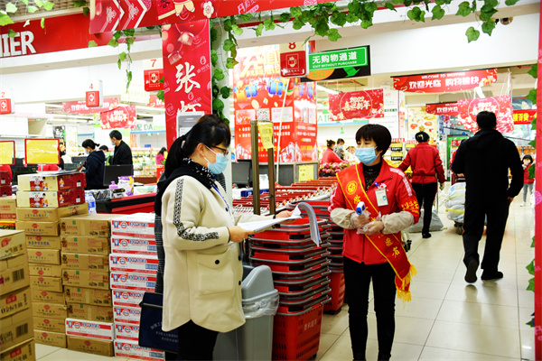 東川區(qū)紀(jì)委監(jiān)委成立3個(gè)疫情防控監(jiān)督檢查組,深入超市、農(nóng)貿(mào)市場(chǎng)、車站等人員密集場(chǎng)所,對(duì)實(shí)施戴口罩、測(cè)溫、驗(yàn)碼等疫情防控措施情況進(jìn)行監(jiān)督檢查。圖為監(jiān)督檢查組到超市查看疫情防控措施落實(shí)情況。(張正余 攝)