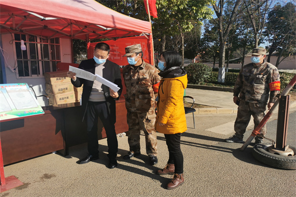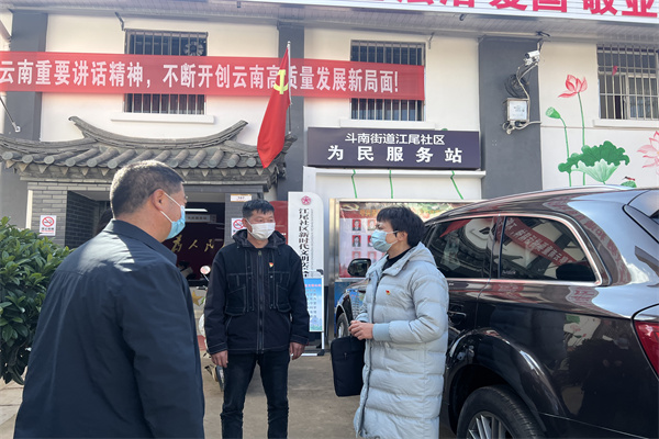 呈貢區(qū)紀(jì)委監(jiān)委第三專項(xiàng)監(jiān)督檢查組到斗南街道江尾社區(qū)開展監(jiān)督檢查,詳細(xì)了解疫情防控物資儲(chǔ)備和各項(xiàng)措施落實(shí)情況。(張旭 攝)