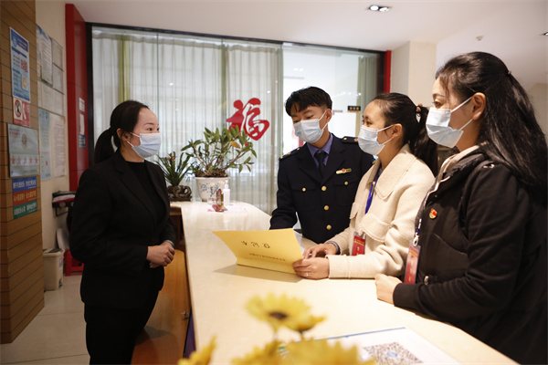 宜良縣紀(jì)委監(jiān)委深入一線開展監(jiān)督檢查,對(duì)酒店、車站、銀行、醫(yī)院、藥店等人員流動(dòng)大的重點(diǎn)場(chǎng)所疫情防控工作情況進(jìn)行監(jiān)督檢查。圖為紀(jì)檢監(jiān)察干部在某酒店了解疫情防控措施落實(shí)情況。(易盛芳 攝)
