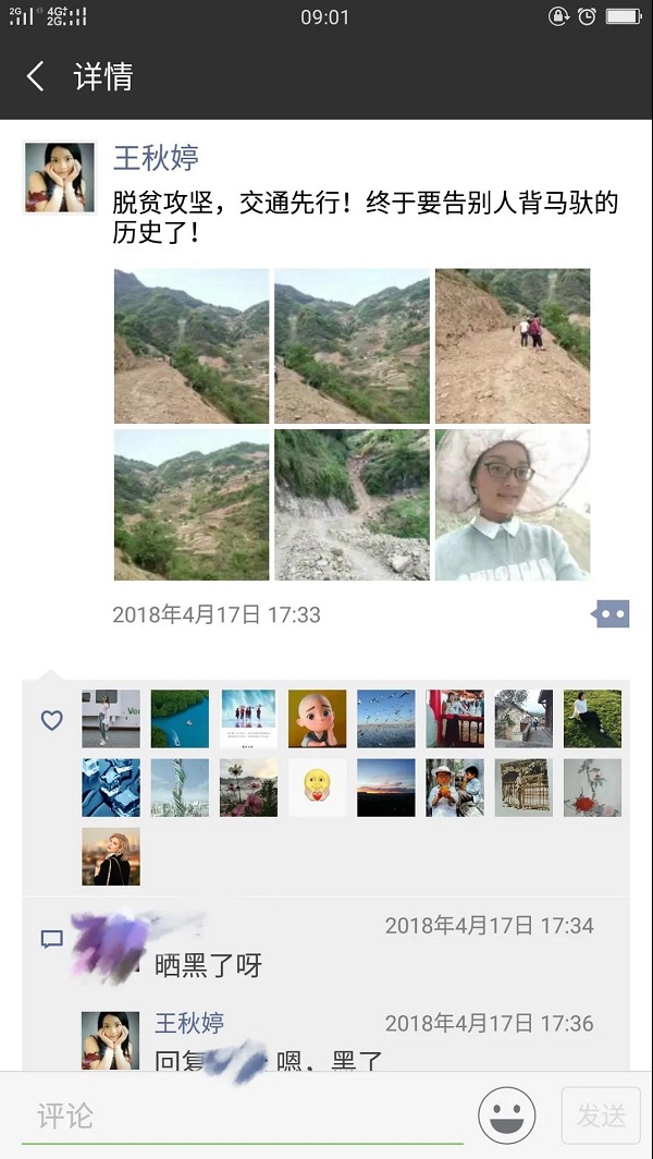“路通了,不用走路了,這離不開當時秋婷要修通這條路的決心和狠勁。一個女娃娃,三天兩頭往這里跑,是她的信心堅定了我們村民的信心,最終打通了這條路,讓我們告別了人背馬馱的歷史……”與王支書交談間,車子已到了秋婷原來掛鉤的豐收村民小組。