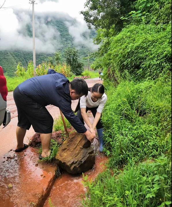 苦干實干加巧干,疏通溝渠解民憂。2018年8月17日,在打瓦村田灣社附近,秋婷同志參加村主干道抗洪保通工作。