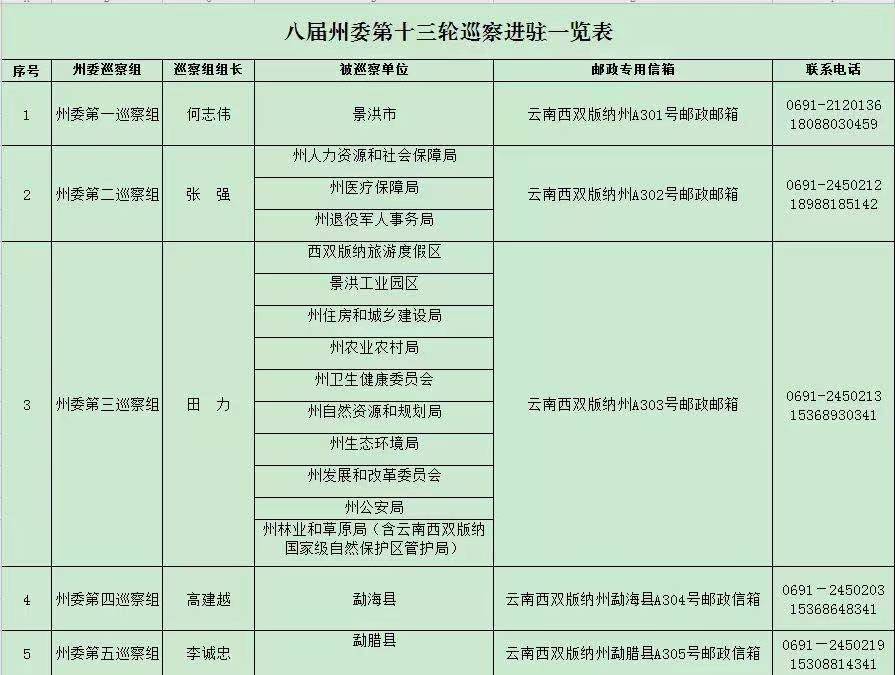 根據(jù)州委統(tǒng)一部署,八屆州委第十三輪巡察對(duì)三縣市黨委、勐臘(磨憨)開發(fā)開放試驗(yàn)區(qū)黨工委、西雙版納旅游度假區(qū)黨委、景洪工業(yè)園區(qū)黨委和州住房和城鄉(xiāng)建設(shè)局、州農(nóng)業(yè)農(nóng)村局、州衛(wèi)生健康委員會(huì)、州自然資源和規(guī)劃局、州林業(yè)和草原局(含云南西雙版納國(guó)家級(jí)自然保護(hù)區(qū)管護(hù)局)、州生態(tài)環(huán)境局、州發(fā)展和改革委員會(huì)、州公安局等8個(gè)州直職能部門黨組織開展民生領(lǐng)域(人居環(huán)境等)專項(xiàng)巡察“回頭看”,對(duì)州人力資源和社會(huì)保障局、州醫(yī)療保障局、州退役軍人事務(wù)局等3個(gè)州直部門黨組織開展常規(guī)巡察“回頭看”。